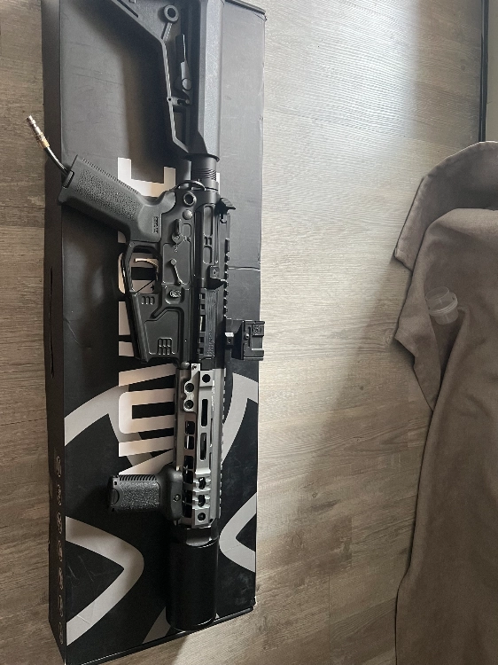C’est une base m4 slr système hpa gate pulsar s avec titan j’ai monter le nouveaux nozzel bloc Maxx m4e canon lambda joint 4tum il y a un garde main geissele gris un silencieux can de chez Sylver back je laisse avec deux chargeur et l’optique de viser elle marche nikel