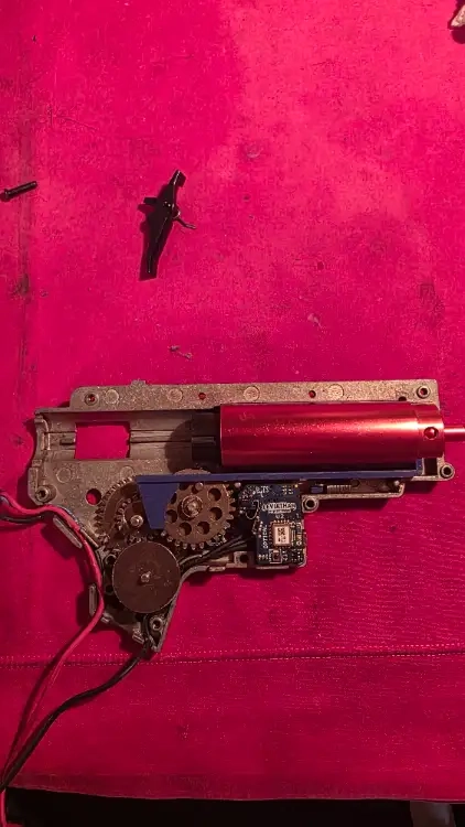 J'ai changé les engrenages qui étaient cassés, mis un ressort M90 neuf et repeint les parties rouge de la réplique (que je trouvais moches).