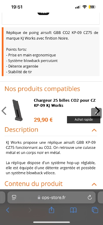 Je vend mon kp-09 cz75 très très peu servie 2 partie à son actif je le vend car j’ai arrêter l’airsoft.
