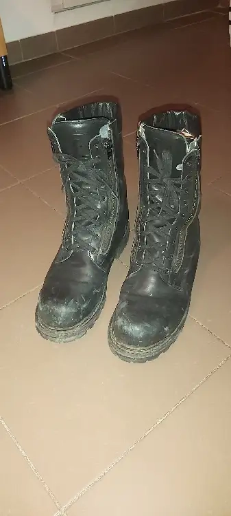 Brodequins de pompiers achetés en surplus militaire pointure 45 elles auraient juste besoin d'un coup de cirage : 70€