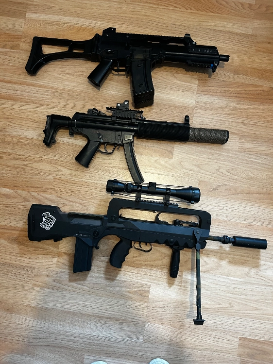 -1 MP5 (mon préféré) avec lequel j’ai joué une petite dizaine de fois, j’ai fait changer quelques pièces en interne et conserver les anciennes si jamais.