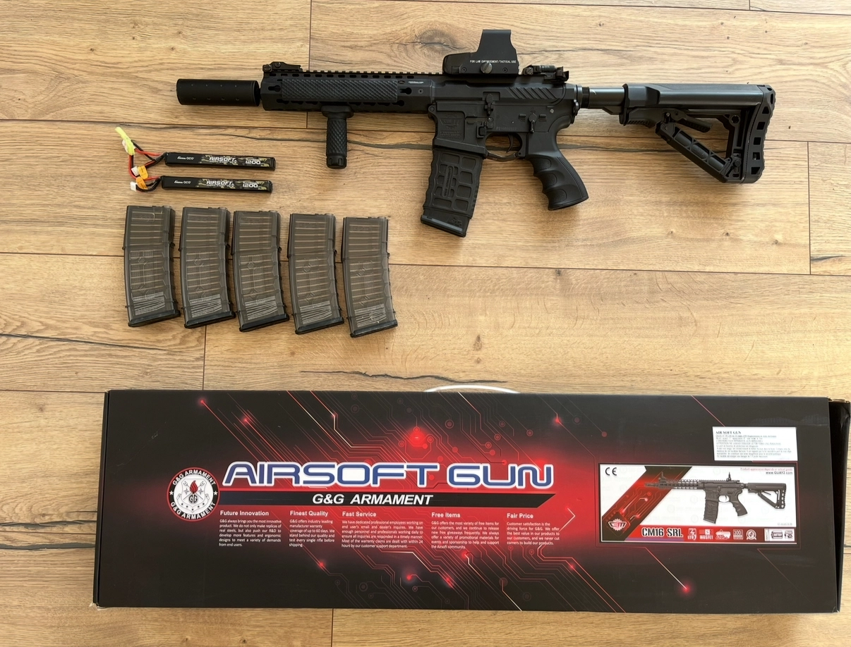 Je mets en vente ma G&G CM16 SRL AEG, jouée seulement sur 3 parties (dont 1 avec upgrades internes). Réplique en excellent état, prête à jouer immédiatement.
