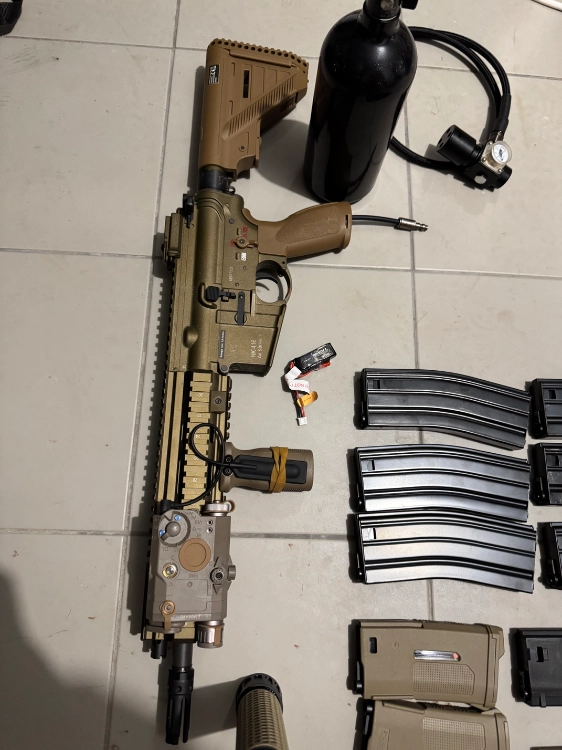 Bonjour je mets en vente mon hk équiper d’un kit hpa polarstar v2 mais je pense problème électrique et pas envie de me pencher dessus car j’ai complètement arrêter la discipline je fournies c’est 10 chargeurs midcap et tous le kit hpa et la batterie. Je reste joignable toute la journée. Je peux fournir avec plein de red dot une torche klarus.