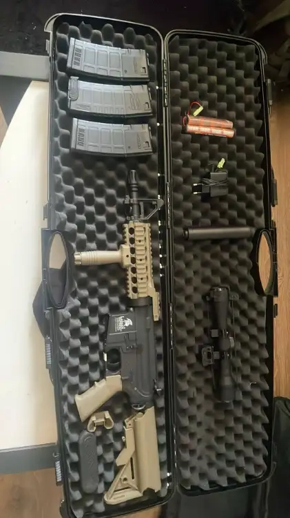 Réplique lancer tactical m4 vendu avec lunette , batterie , chargeur batterie , 3 chargeurs , silencieux.