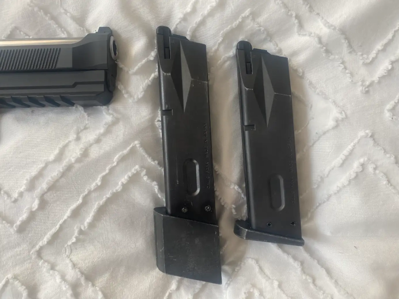 Vends réplique de poing avec un chargeur d'origine + un chargeur avec extension. Bon état, il manque le logo d'un côté. Servi 5 fois max. Première main. Prix non négociable. Me contacter pour plus d'infos.