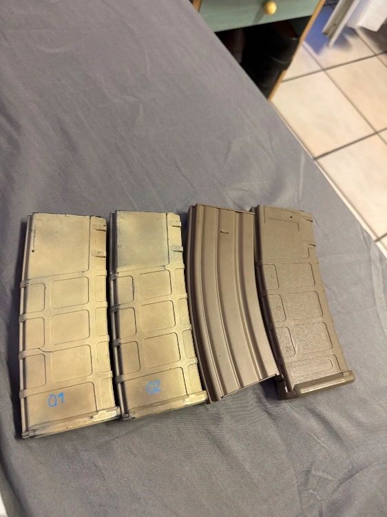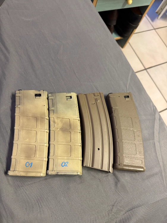 Bonjour, je vend ce lot de 4 chargeurs mid cap de M4 de la marque SPECNA ARMS car je me suis séparé de ma m4 donc ils ne me servent plus,