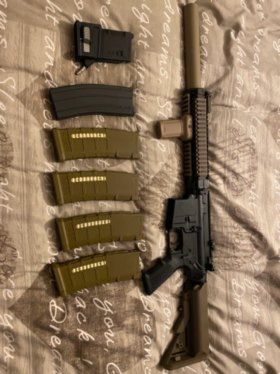 Bucking Flat Ryusoku Modify La réplique et équipe Nozzle MPA renforcé complet pour M4 MWS Marui Angry Gun elle et fourni avec 5 chargeur plus un adaptateur pour chargeur aeg en hpa en extérieur il y’a une poignée plus un silencieux date achat le 01/04/25 la réplique