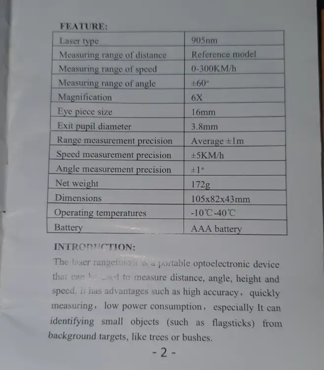 télémètre laser excellent état. avec housse de protection, chiffon lentille mode d'emploi.