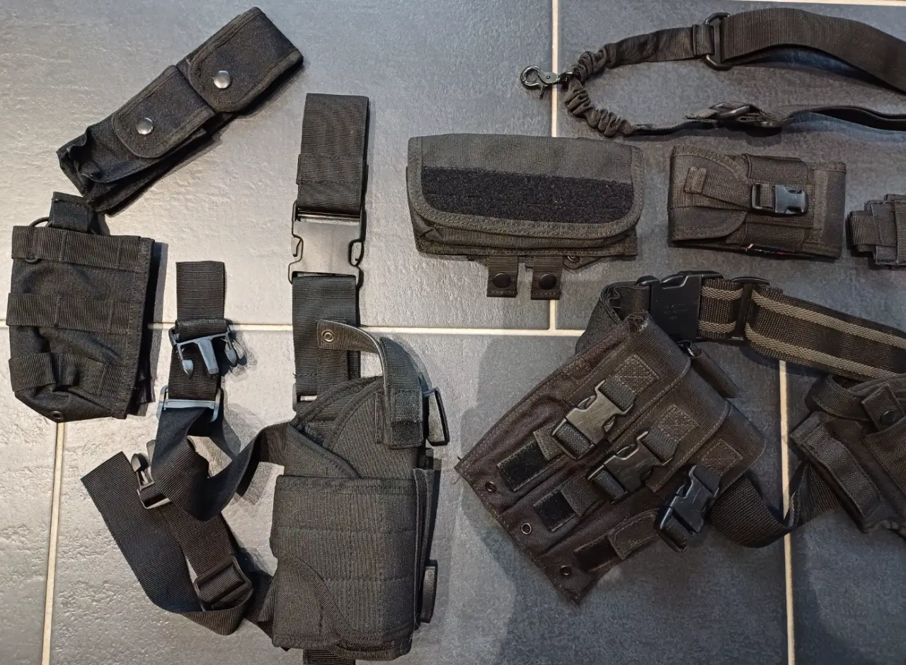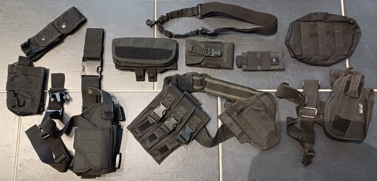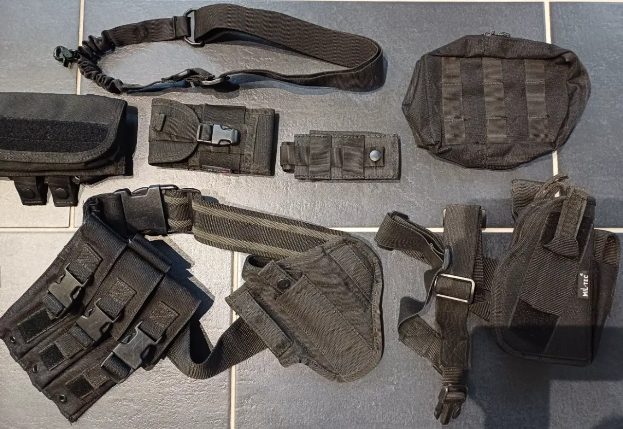 1 Ceinture tactique noir grip avec 1 holster noir et un porte chargeur triple pour mp5/mp7/mp9/arp9 etc.. Utilisé 2/3 fois mais excellent état.