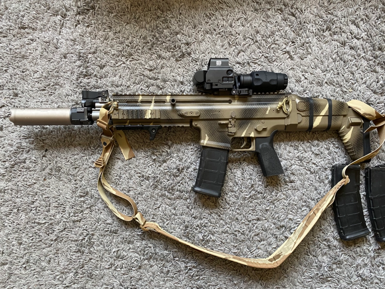 Possibilité de rajouter des accessoires (Optiques, handstop Magpul RS, 2 chargeurs WE V3)