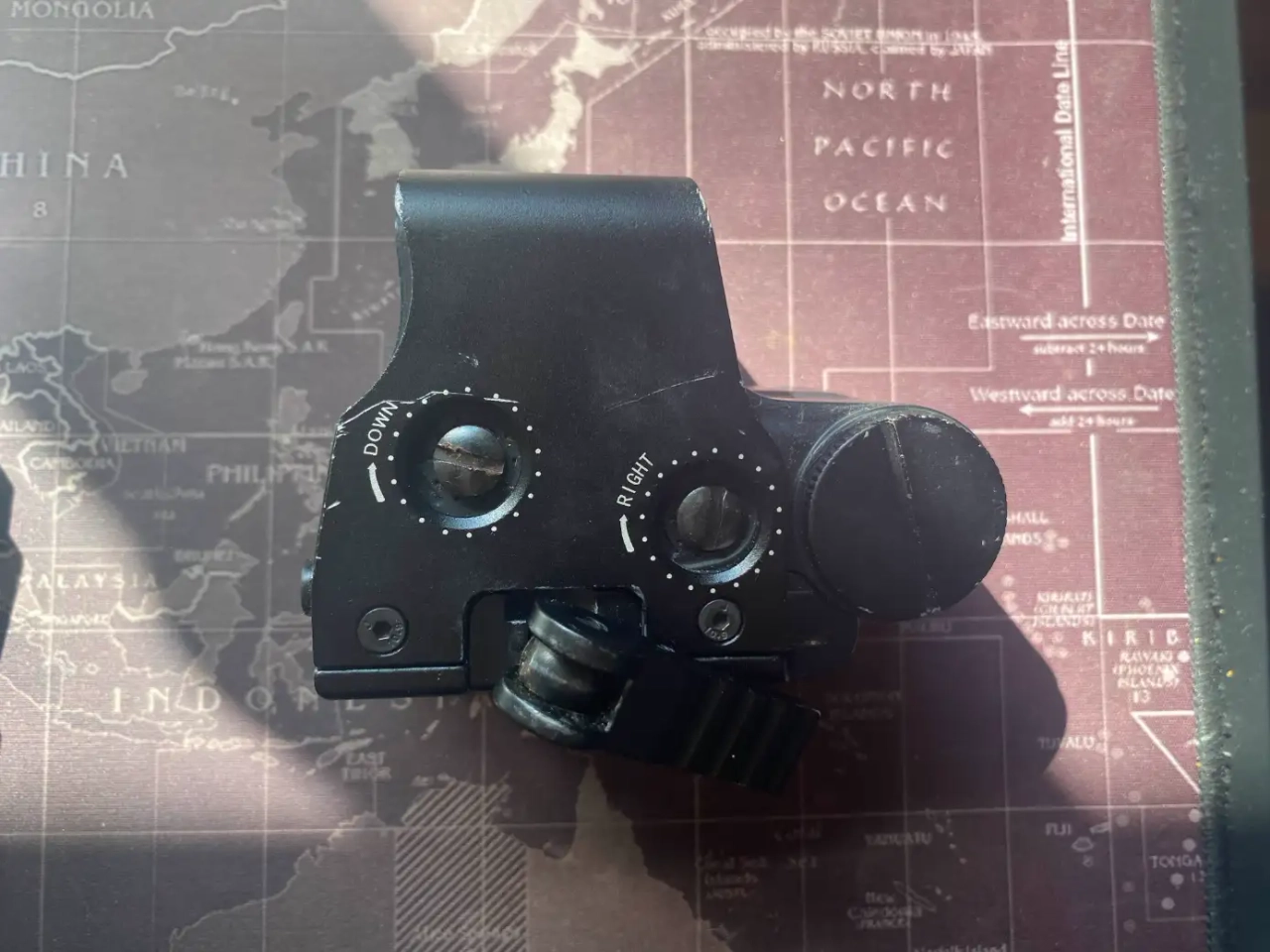 Repro de viseur Eotech xps 2 jj airsoft. Un peu abîmé sur l’extérieur mais fonctionne très bien. Le réticule peut être réglé en vert ou rouge.
