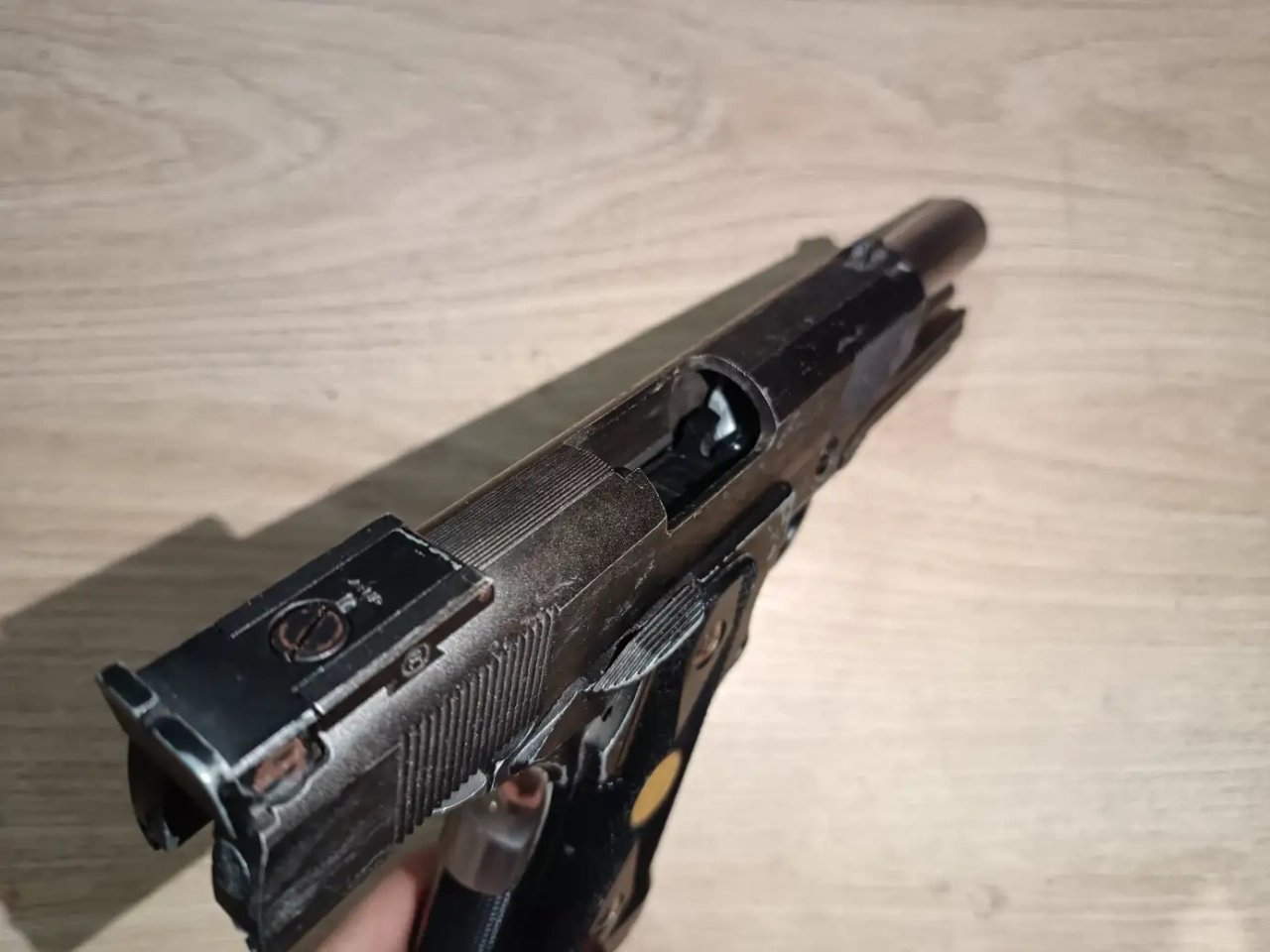 Bonjour à tous ! Je vends ici un baby hi capa we qui tourne comme une horloge ! La réplique a un corps en métal avec un canon court, fonctionne tip top !
