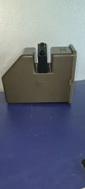 Ammo Box d'origine pour réplique airsoft AEG type m4 ou lmg lmg krytac . Disposant d'une capacité d'emport de 3500 billes, elle dispose d'une remontée électrique des billes grâce à un moteur renforcé lors de l'appui sur un bouton spécifique.