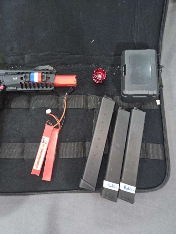 Bonjour, je vends cette réplique airsoft (arp9 g&g custom rouge fire)