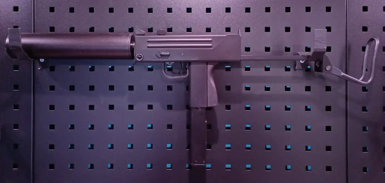 Le HG-203 et la réplique du pistolet mitrailleur M11.