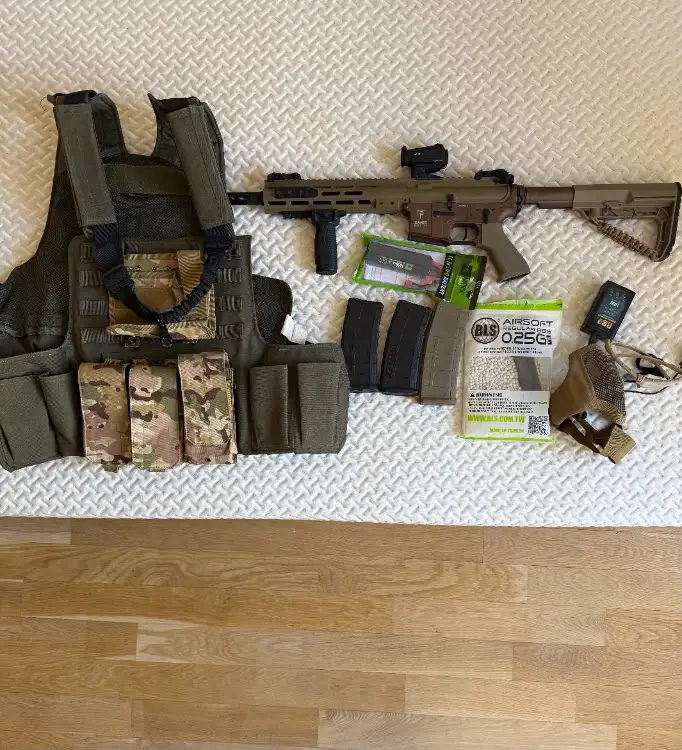 Je me sépare de l’ensemble de mon équipement d’airsoft, en excellent état (utilisé uniquement sur 5 parties).