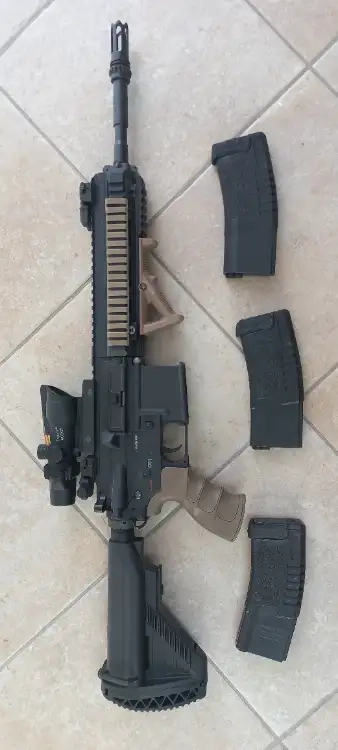 Je vends à regret mon HK 416 classic army. Réplique quasi neuve (2 parties à son actif), interne up-gradé 360fps, étanchéité refaite et cylindre optimisé, canon 6.02, gearbox QD, mosfet intégré et détente micro switch. Réactivité au top et cadence 24billes/s à la 11.1V. Révisée tourne nickelle. Crosse 416 siglée HK (90€ neuve).