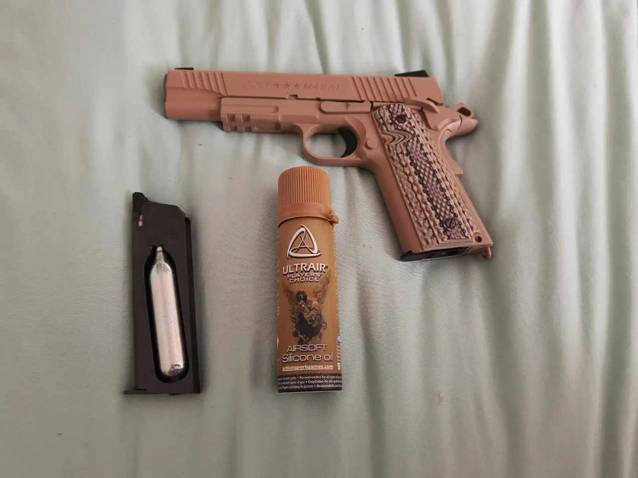 Je propose à la vente mon M45A1 coloris Desert Tan, état neuf. Il n'a jamis vu la poussière, la boue ou le terrain. Je m'en suis servi exclusivement en tir sur cible.