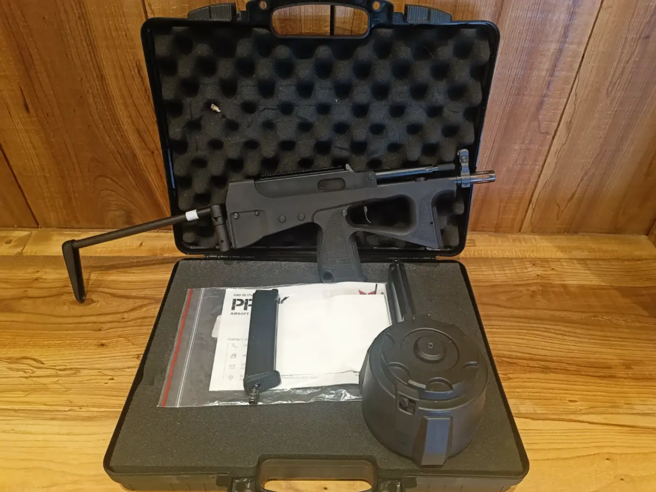 Il s'agit d'un kit adapateur drum Pp2k de chez Airtac. Il y a un soucis de feed avec le drum. Les billes ne remontent pas dans le chargeur correctement. N'ayant pas le temps de m'en occuper je me sépare de l'ensemble