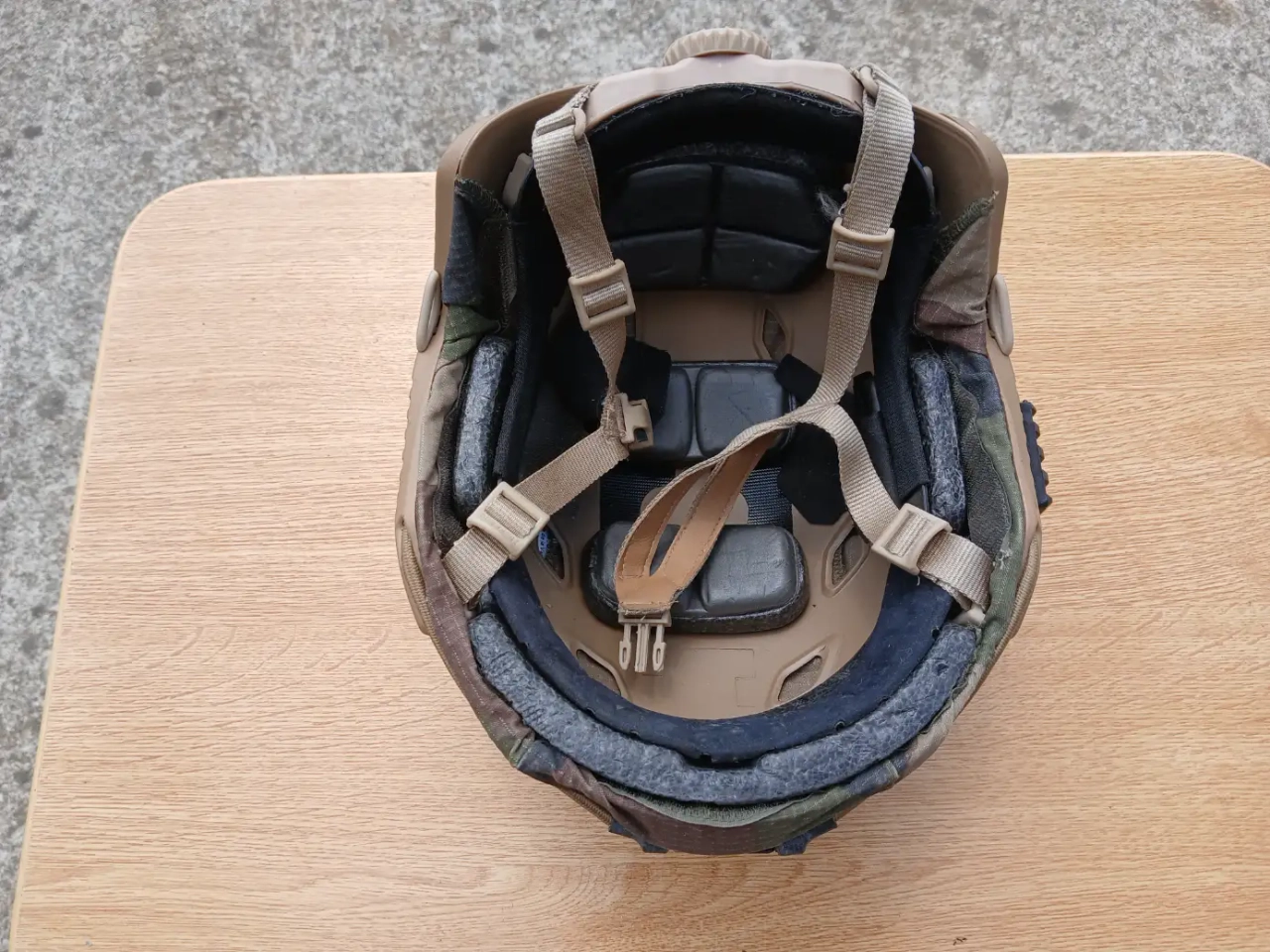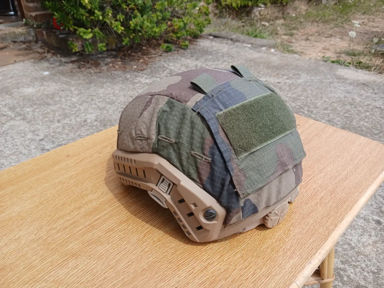 Un couvre casque camo CE Français que j'ai appliqué moi même accompagne le casque.