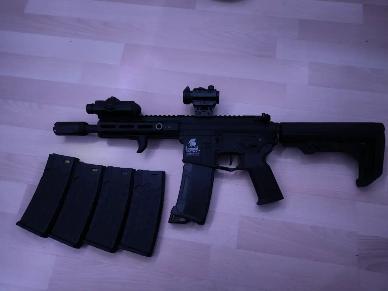 Je vends la réplique avec point rouge, poigné tactique, anpeq fonctionnel et traceur avec 9 chargeur (5 midcap hexmag et 4 high cap chargeur court de double bell).