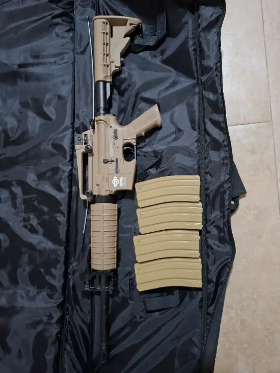 CM16 Combat machine avec 4 chargeurs et la housse de protection etat correct, juste le canon qui est abimé.