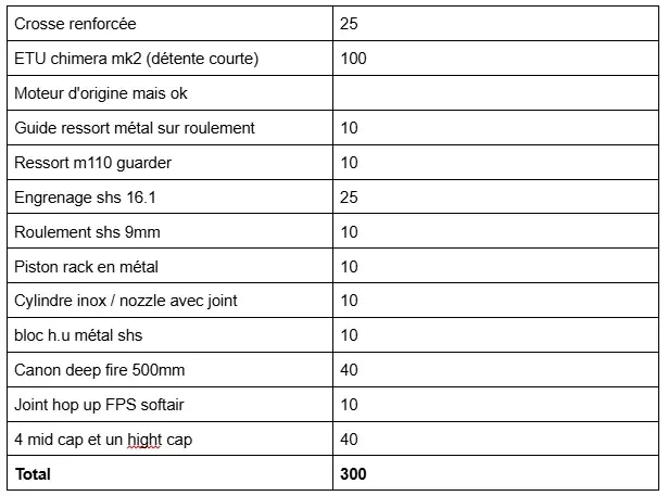 Salut, je me sépare de mon Ak, full métal, Upgradé, à 1.35 joule, ça nous donne 60/65m linéaire en 0.30g, et madame a une très bonne réactivité même en 7.4, avec une petite course de détente et une charmante sonorité.