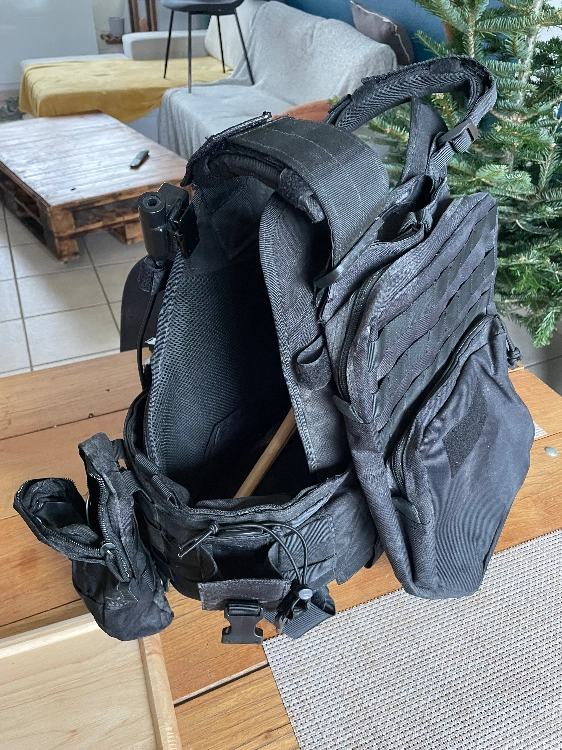 Bonjour, je vends mon gilet tactique condor, entièrement équipé, poche tactique, porte chargeur, 2 grenades manuelle et une tornade à gaz, porte gants, poche talkie, ceinture avec porte chargeur pour réplique de point, sac à dos tactique, handset pour radio…