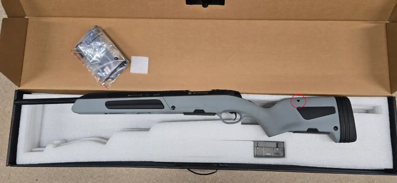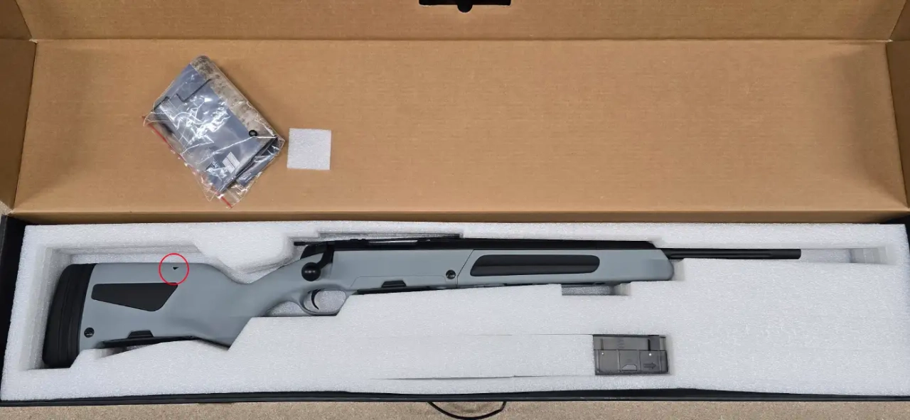 La crosse a était modifiée pour le passage d'un flexible est d'un kit CO2 , de ce fait l'usinage se vois de l'extérieur sur la crosse (2 trous voir photo)