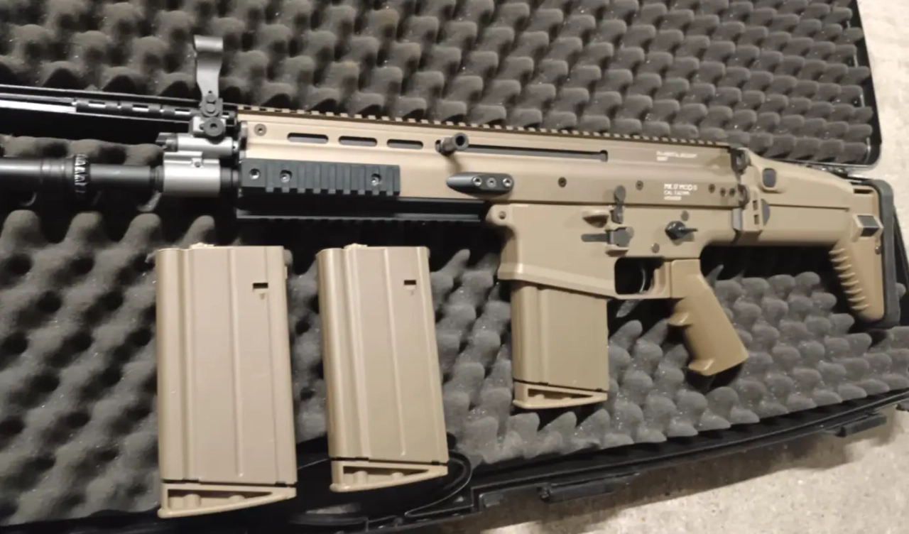 Un Scar-H Ebbr next gen de chez Tokyo Marui en AEG. Il s'agit de la version avec blowback, recul à chaque tir et arrêt de tir en fin de chargeur. Le top des AEG.