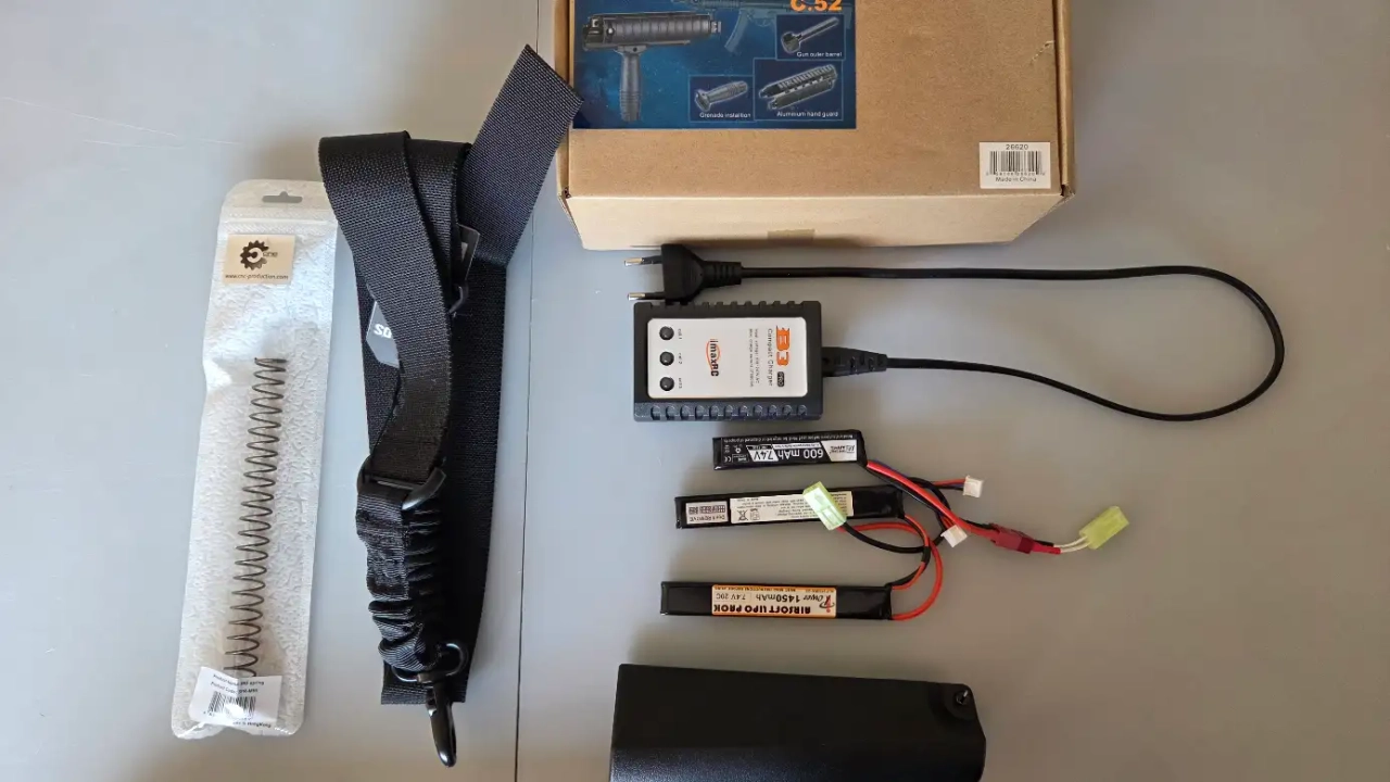 En interne, j'ai juste changé le moteur pour un Hi torque ATM (27€) et le ressort pour un SP85 (le reste fonctionnant très bien, je n'y ai pas touché). On a donc une réplique fiabilisée, avec une réactivité très correcte et une puissance de 300fps pour une portée utile d'environ 45m à la 0,28gr (maximum de distance et de grammage à disposition pour mes tests).