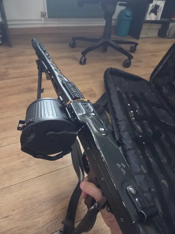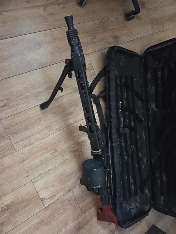 Je fournis avec, la sacoche, le rail installé et le red dot ainsi qu'une vraie sangle de MG42.