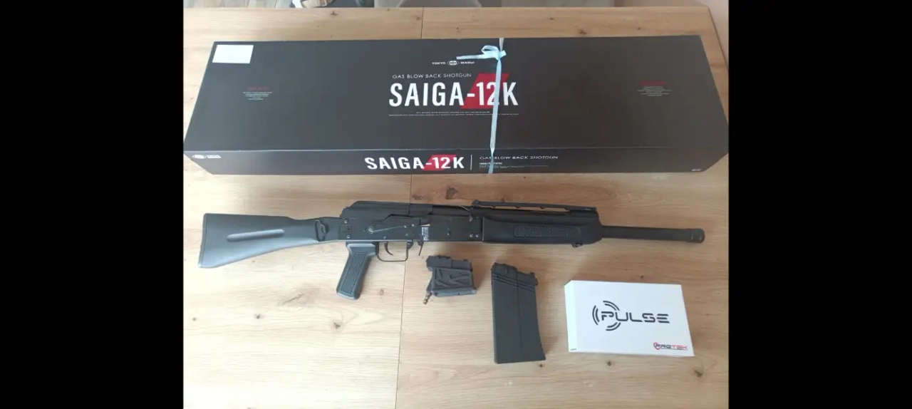 Saiga 12k Tokyo marui en parfait état interne / externe, fonctionne parfaitement, très peu utilisé !! (étiquette du selecteur de tir encore présente) , nettoyé/graissé après chaques parties (4 parties au total) . Personne très soigneuse !
