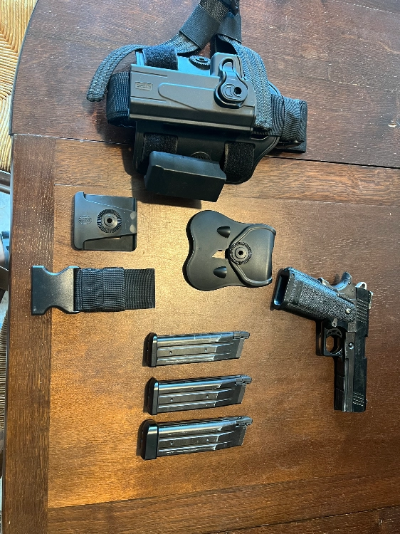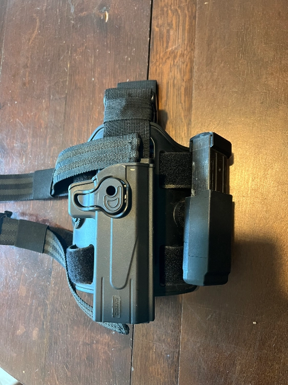 Holster avec 2 accroche ceinture différentes et un plaque de cuisse
