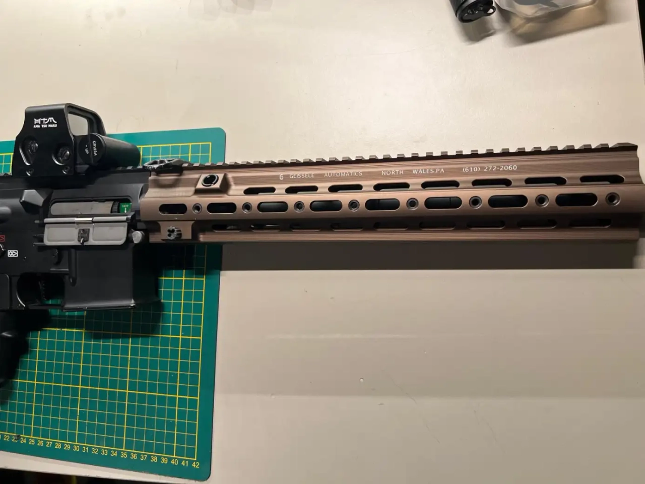 Je lui ai également mis un rail 14.5' ainsi qu'un rallonge de canon. Le rail d'origine et le piston sont aussi compris, vous permettant de repasser la réplique en 10'. Le canon interne est toujours celui d'origine donc il ne dépassera pas si vous faites cette opération.