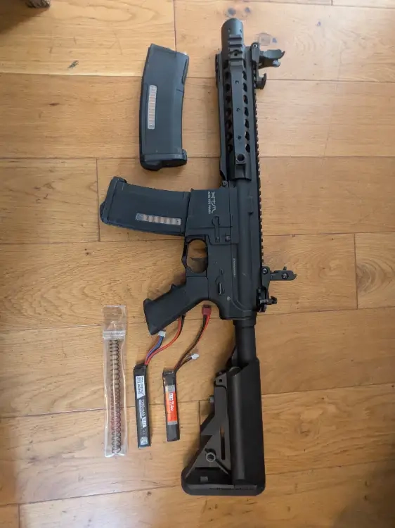 Vends une M4 lightweight de la marque Ama Tsu Maru, fonctionne parfaitement et en très bon état, vendue avec une batterie de 7,4V et une de 11,1V pour plus de cadence ainsi que 2 chargeurs mid-cap et un ressort.