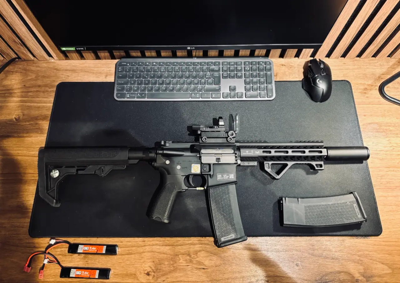 2 batteries 7,4 + 2 chargeurs mid cap + 1 sangle + 1 poignée + 2 ressorts (changement rapide pour 330 FPS ou 390FPS) d'origine + 1 ressort ASG 105 (360 FPS)