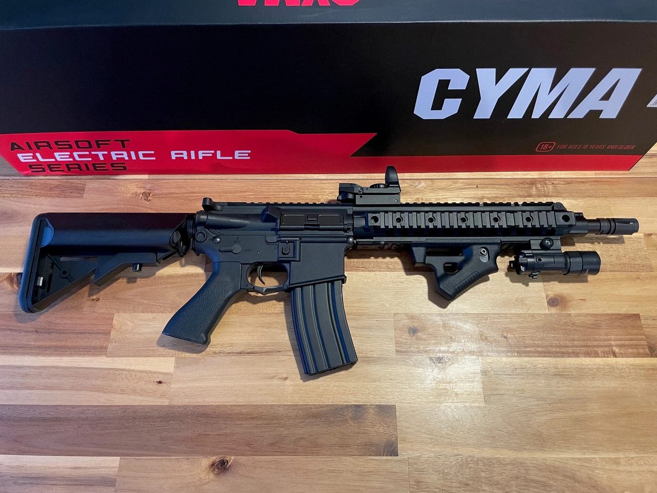 Le fusil d'assaut Cyma M4 CM.622 Mosfet Edition est fabriqué en plastique robuste et de haute qualité, ce qui lui confère un faible poids et une maniabilité optimale sur le terrain.