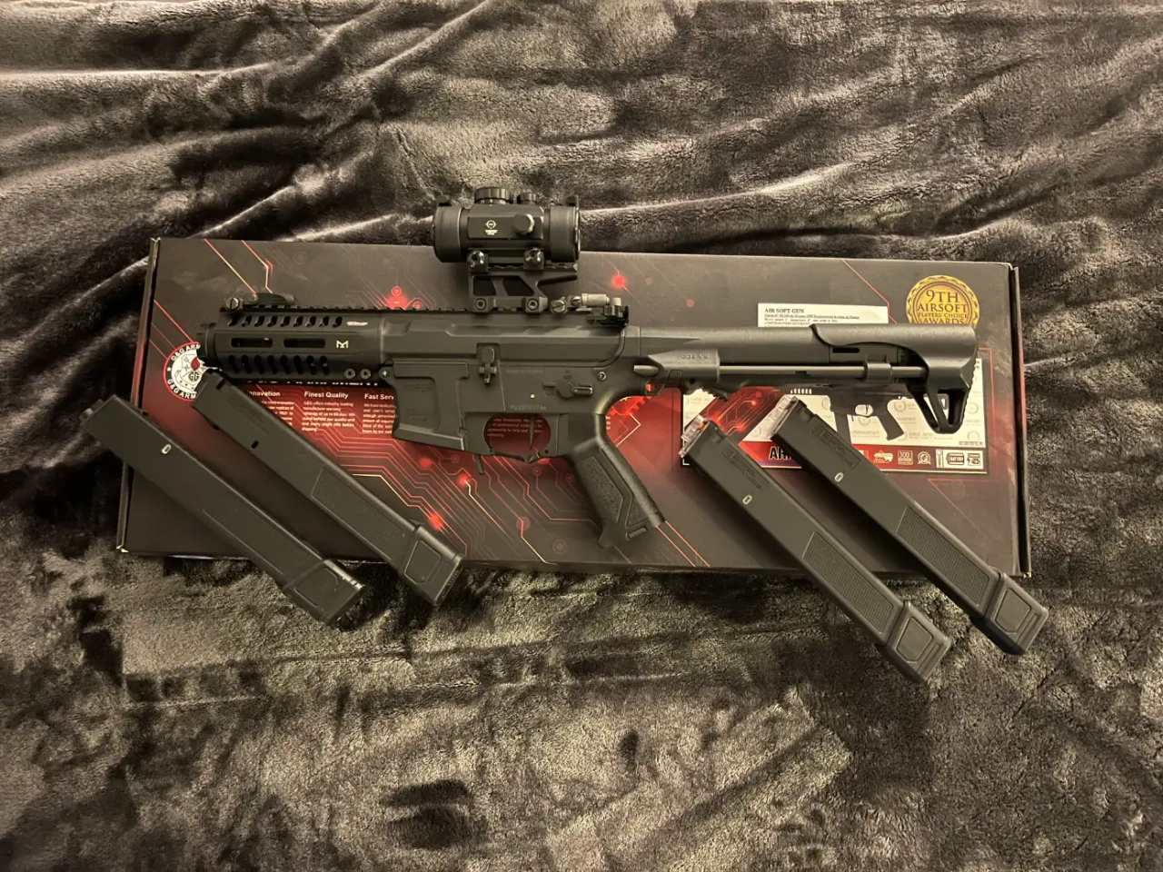 Je vend mon ARP9 tres peu jouée avec 4 chargeurs, un réhausseur et son red dot, une housse de transport noir.