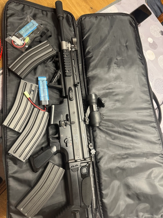 Bonjour je mets en vente ma réplique Scar-h Tokyo Marui Next Gen avec 4 chargeurs, viseur point rouge.