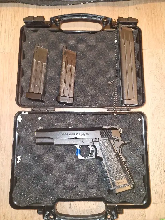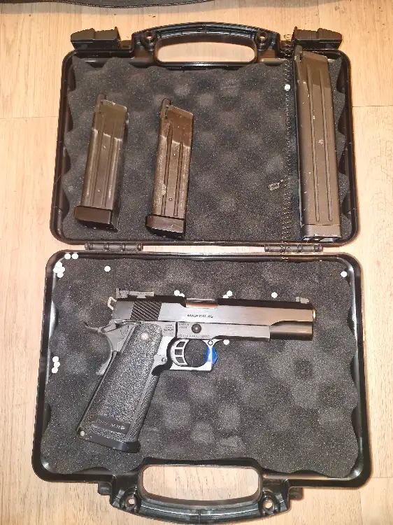 Je vends mon Tokyo Marui Hi-Capa 5.1 GBB noir, une des répliques de poing les plus populaires en airsoft pour sa précision, fiabilité et performance.