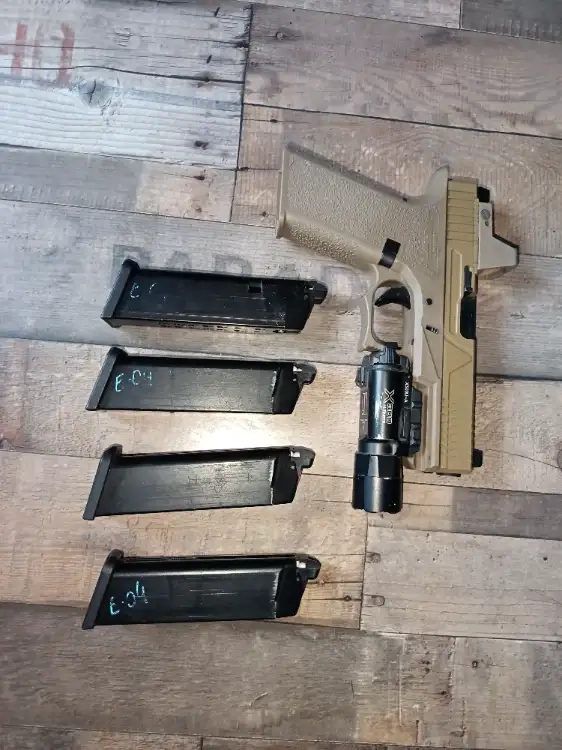 Vx7311 à gaz avec 4 chargeurs + lampe (fonctionnelle pile à mettre) + viseur point rouge (pile à changer)