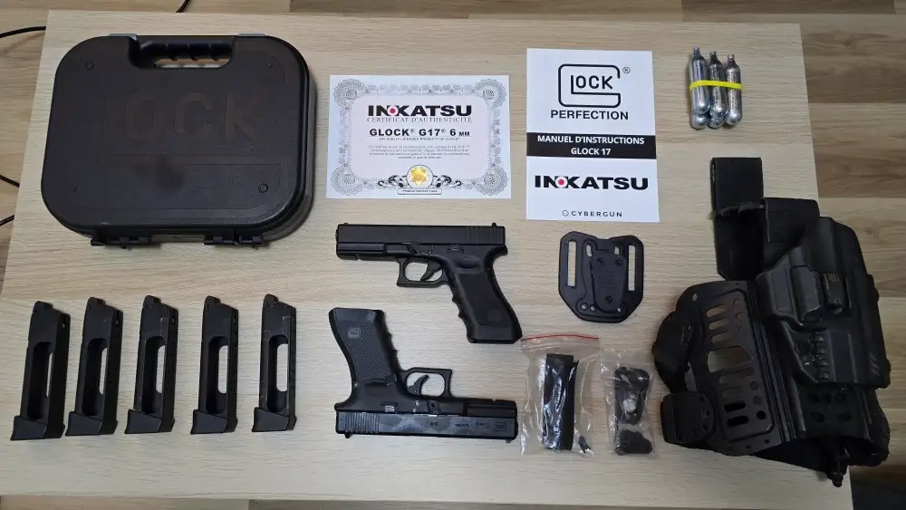 Vends Glock 17 Gen3 Blowback CO2 INOKATSU bon état général (traces d'usure, fonctionne parfaitement) (valeur neuf ~250€)