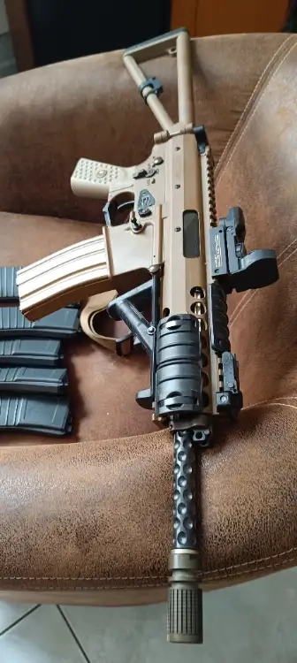 Elle est vendu avec 6 chargeur dont certains fuit. un viseur point rouge special ops edition et une poignée.