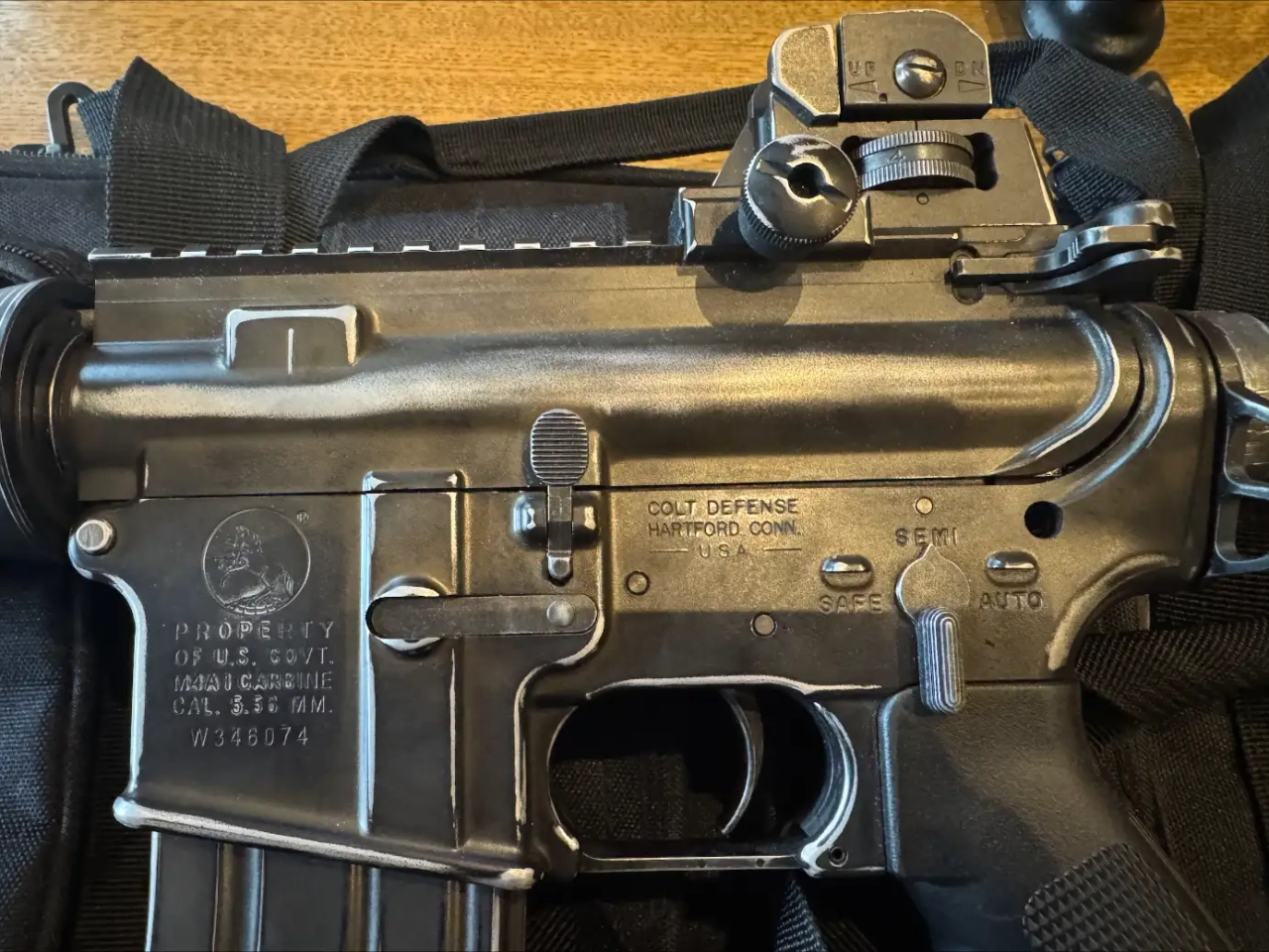 La réplique a été fabriquée en utilisant, entre autres, de l'acier, de l'aluminium et du plastique. L'anneau de sangle tactique, toutes les goupilles et les vis sont en acier . L'aluminium est utilisé pour les éléments suivants : amortisseur de flammes, canon externe, rails RIS sur le lit, anneau delta, canon, grip de rechargement, volet d'éjection d'obus, crosse, anneau de montage de la flasque avec son guide. La grip de pistolet A2 caractéristique et la gourde sont en plastique.
