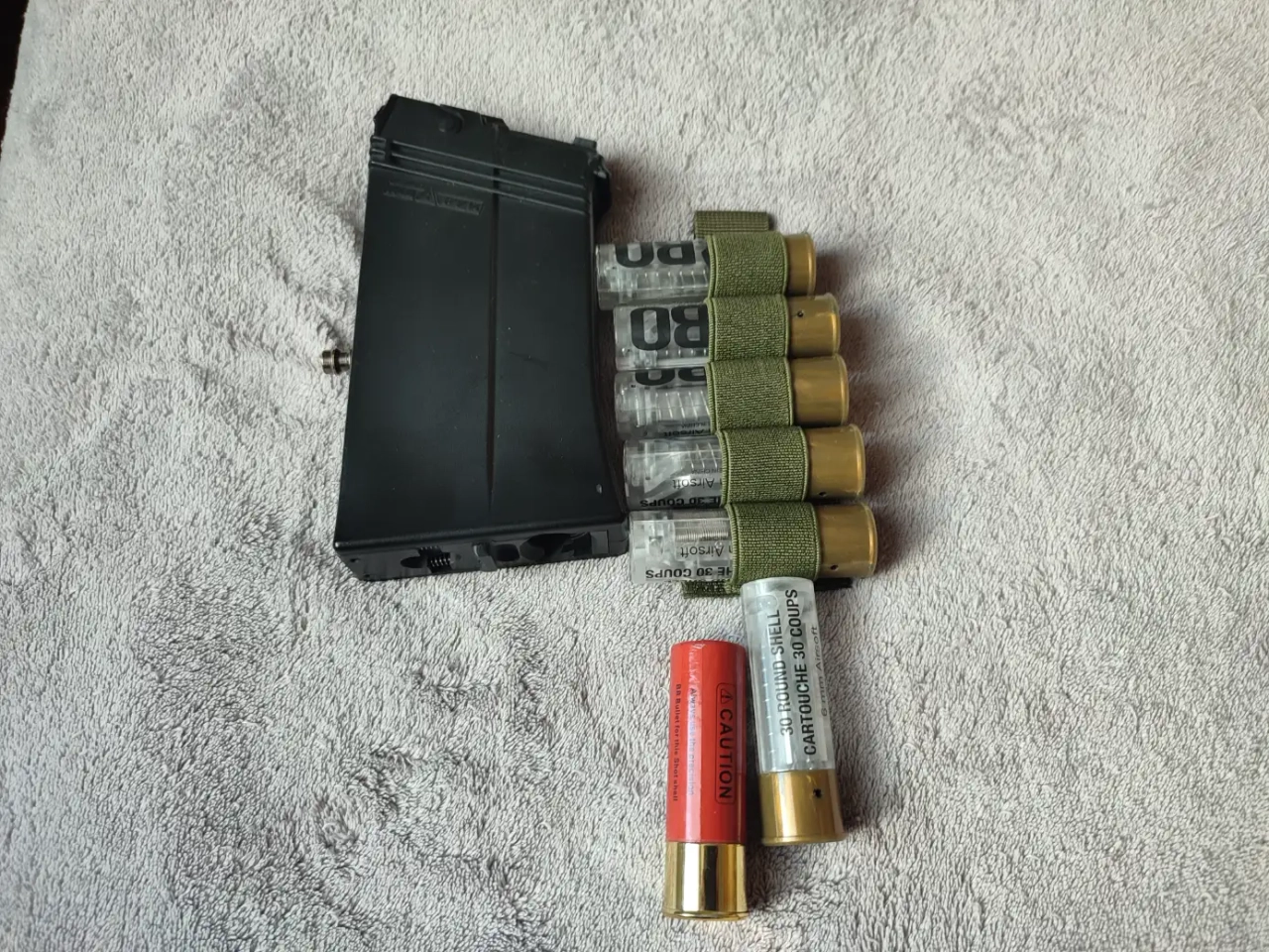 -Un chargeur saiga 12k hPa avec système de cartouche pompe. Avec 7 cartouches et un porte cartouche olive: 70€