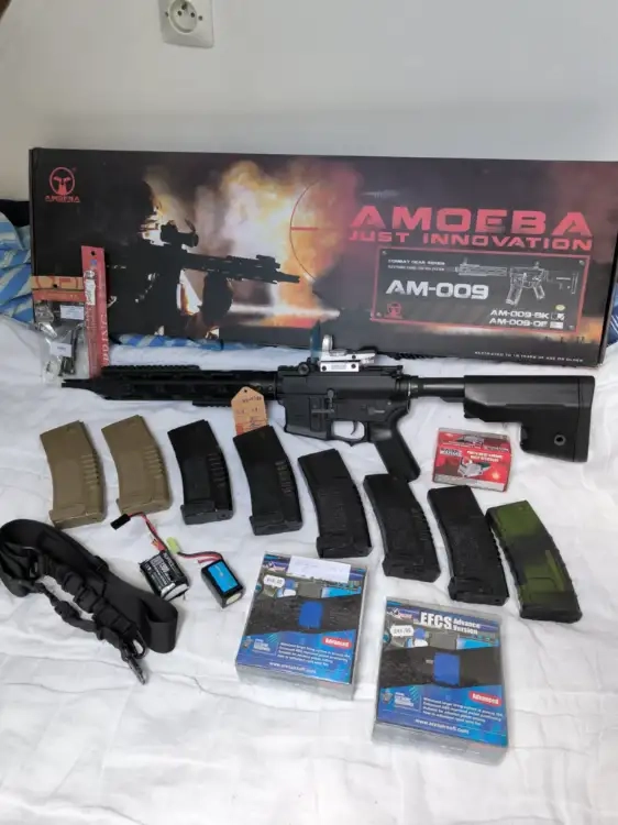 Vend réplique Amoeba AM 009 avec intérieur carte neuve, ressort M90, spring guide sur roulement ( pièces origines fournies). 1 joule.