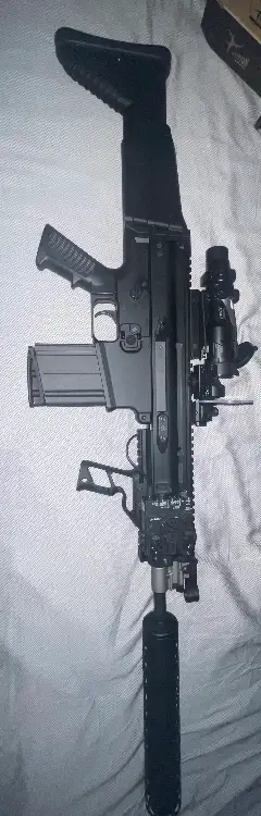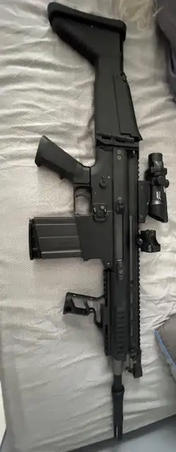 Je vends ma réplique SCAR H Tokyo Marui Full Upgrade car je change de projet et elle n'est pas adapté à mon style de jeu. Elle n'a jamais été utilisé sur le terrain. Excellent état.