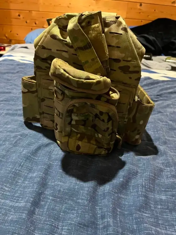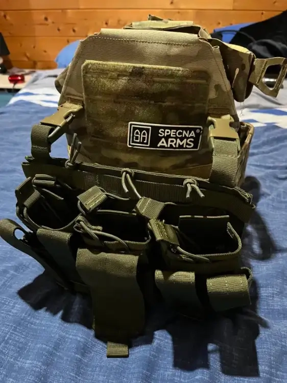Bonjour je vend un gilet réglable ( taille M) avec cela un porte chargeur et de sa poche HPA .