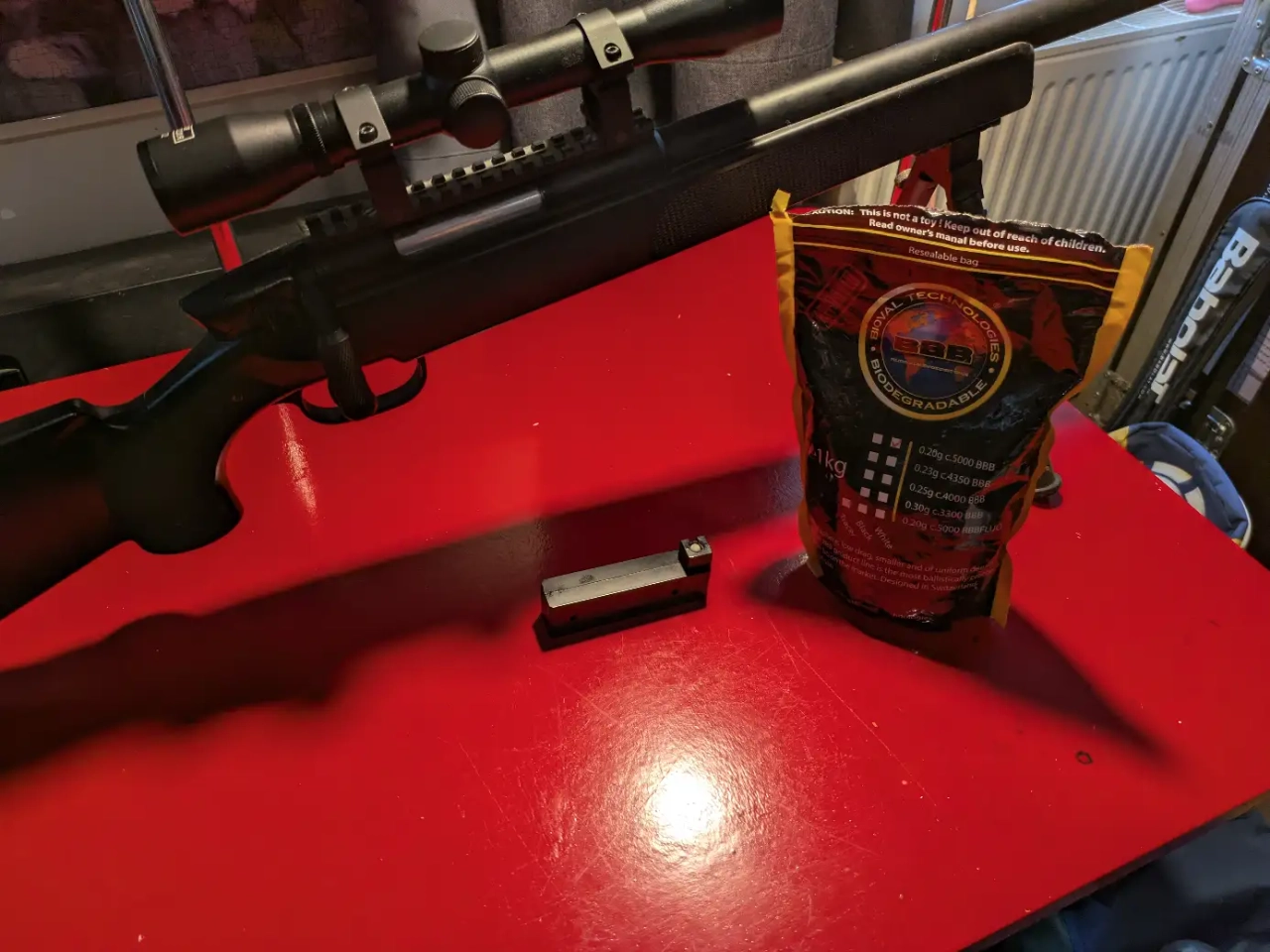 Vendu avec le bipied et la lunette 4x32 et un pack de bille au 2/3 et 1 chargeur.